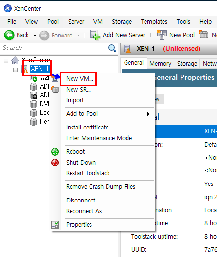 2.1.1. XEN-1 Server 선택 -> New VM 클릭