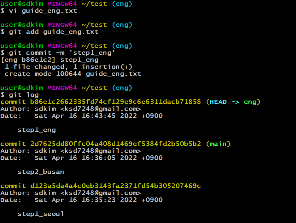guide_eng.txt 파일 내용 2.6. 생성한 guide_eng.txt commit