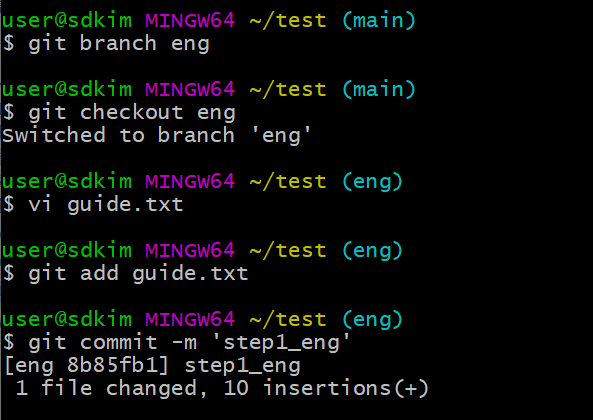 파일 내용 3. branch 생성 후 동일 파일 작업