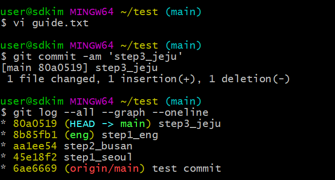 2.3.3. # git commit -am 'step2_busan' -> 한번이라도 commit을 했다면 add와 commit 동시가능 : 옵션 -am