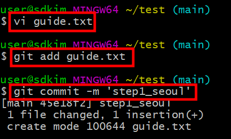 2.1. guide.txt 파일 생성 후 버전 관리 시작