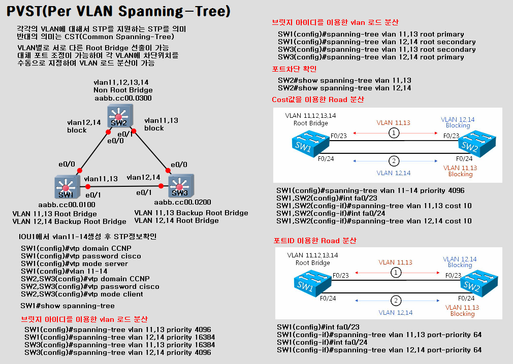 오늘은 spanning tree protocol 중 VLAN별로 STP를 구현하는 PVST에 대해서 살펴보겠습니다.