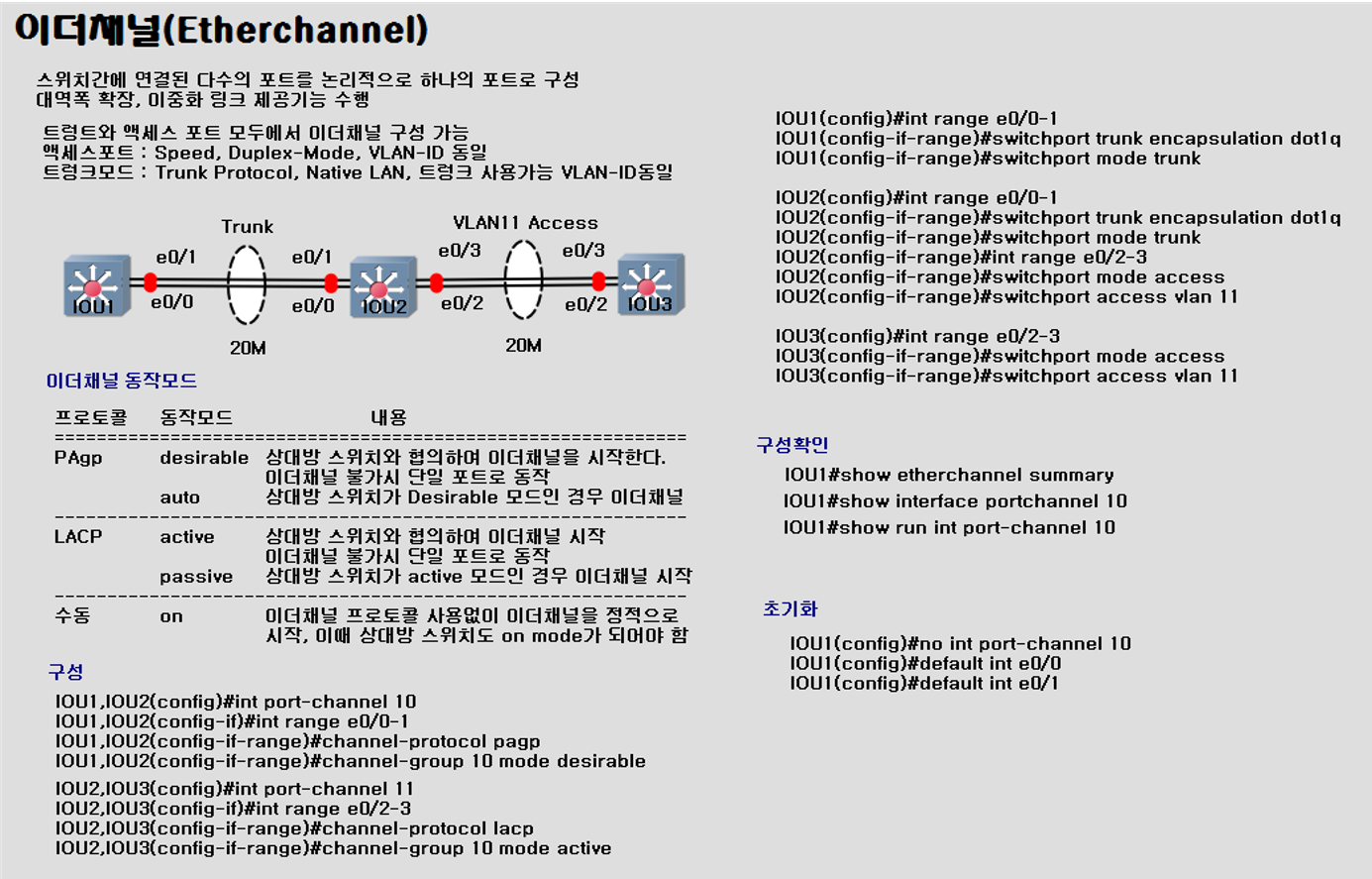 2.1. Access와 Trunk Port 모두에서 Etherchannel 구성 가능