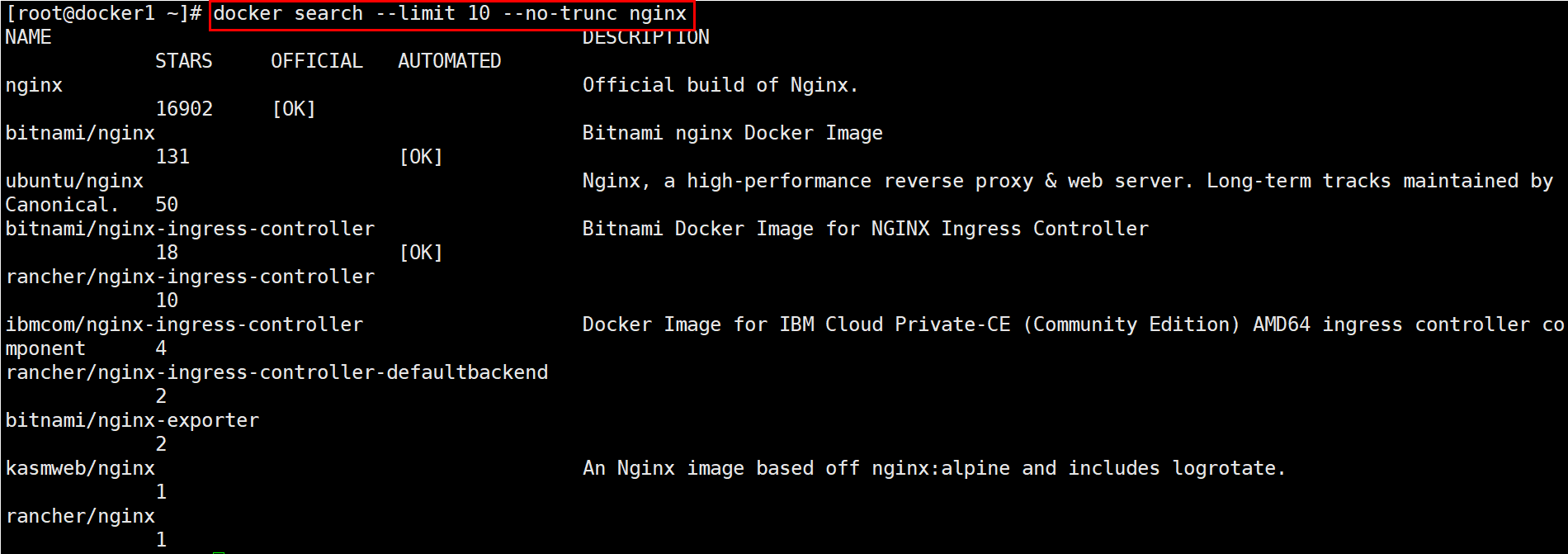 docker search -f is-official=true nginx docker search -f is-official=false nginx