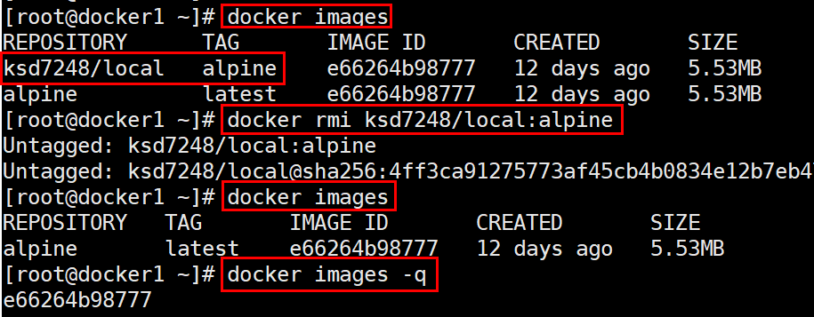 docker tag alpine:latest ksd7248/local:alpine1.2.6. 변경한 image 확인