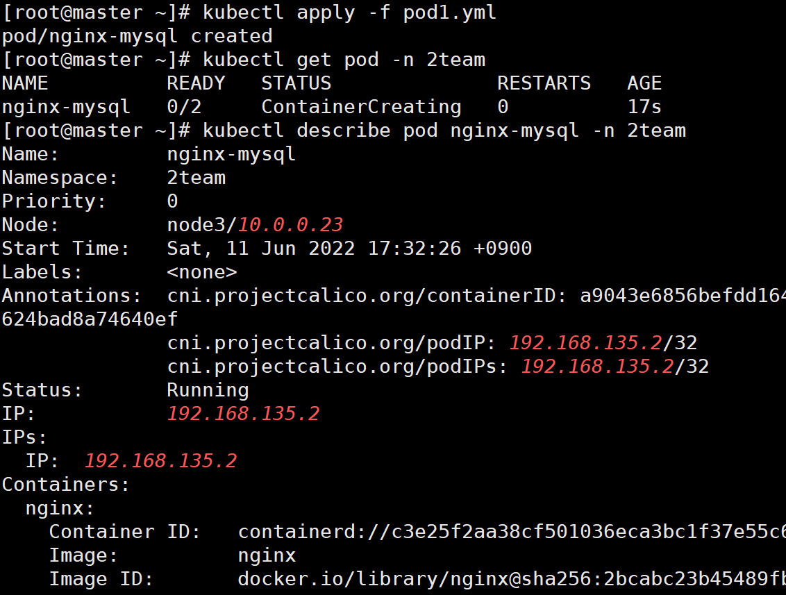 2.2.1. POD가 Node에 결합되었고 모든 Container 생성 완료