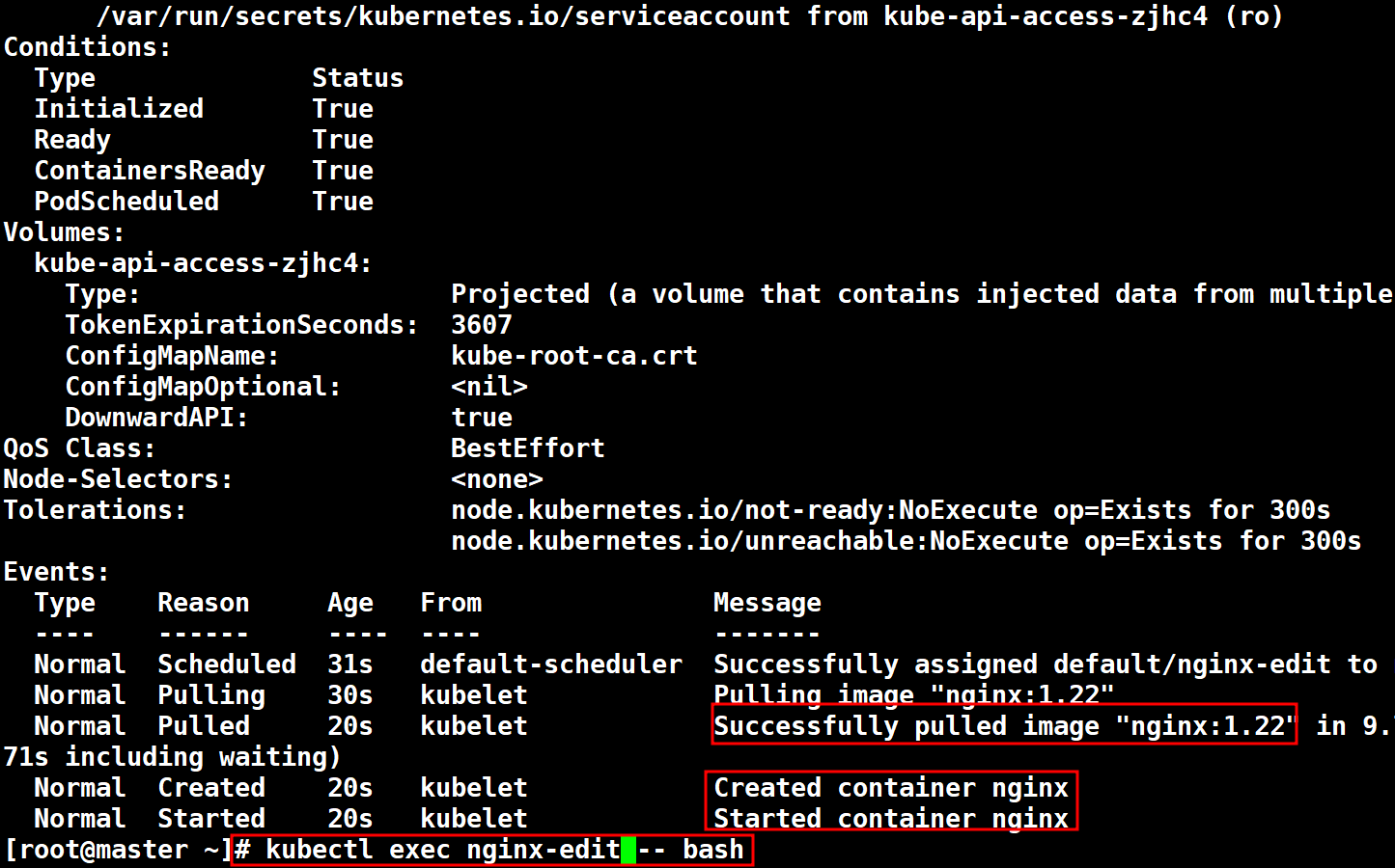 # kubectl get pod -o wide default namespace에 pod가 nginx-edit 하나뿐임으로 # kubectl describe pod nginx-edit 변경된 버젼 정보 확인
