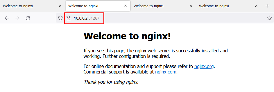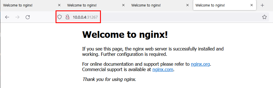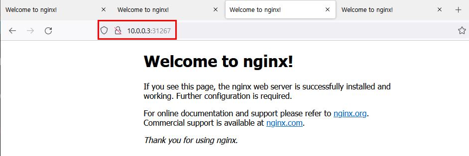 3.4.3.1. 브라우저에서 각 NODE IP:NodePort 로 접속 테스트