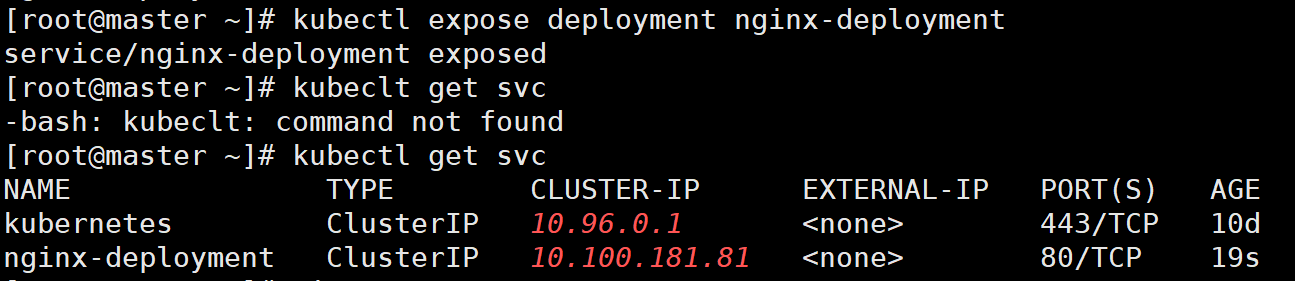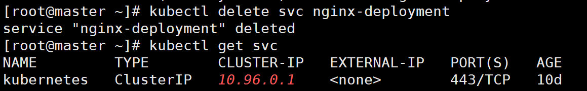 # kubectl delete svc nginx-deployment # kubectl get svc