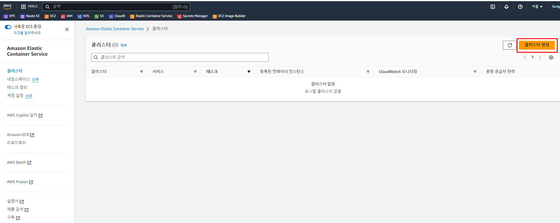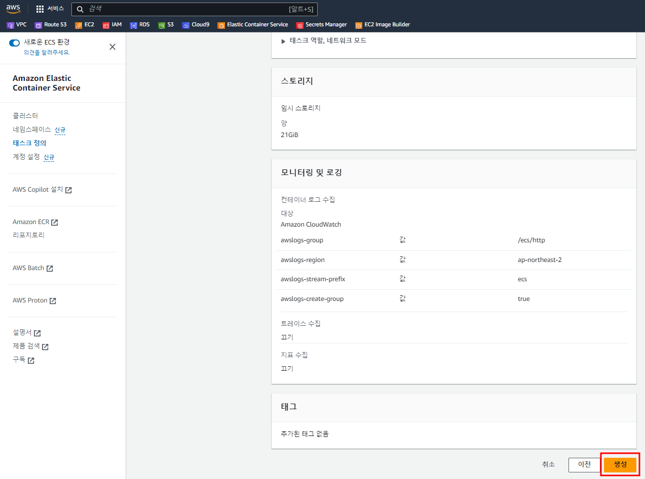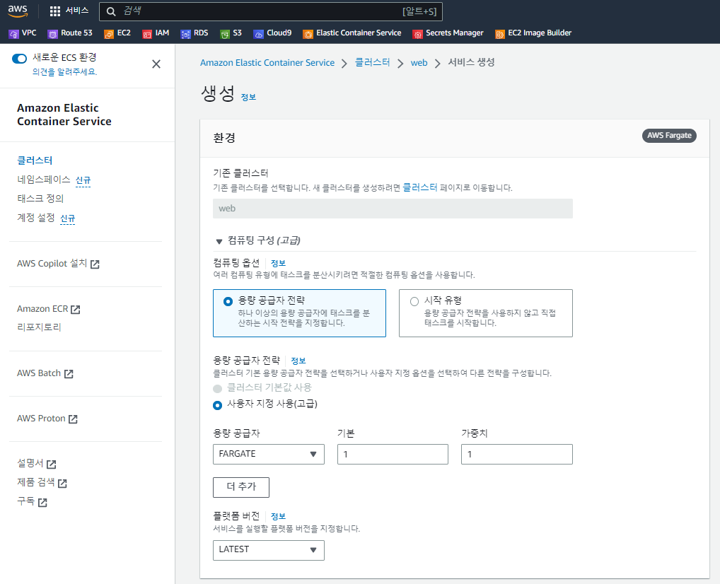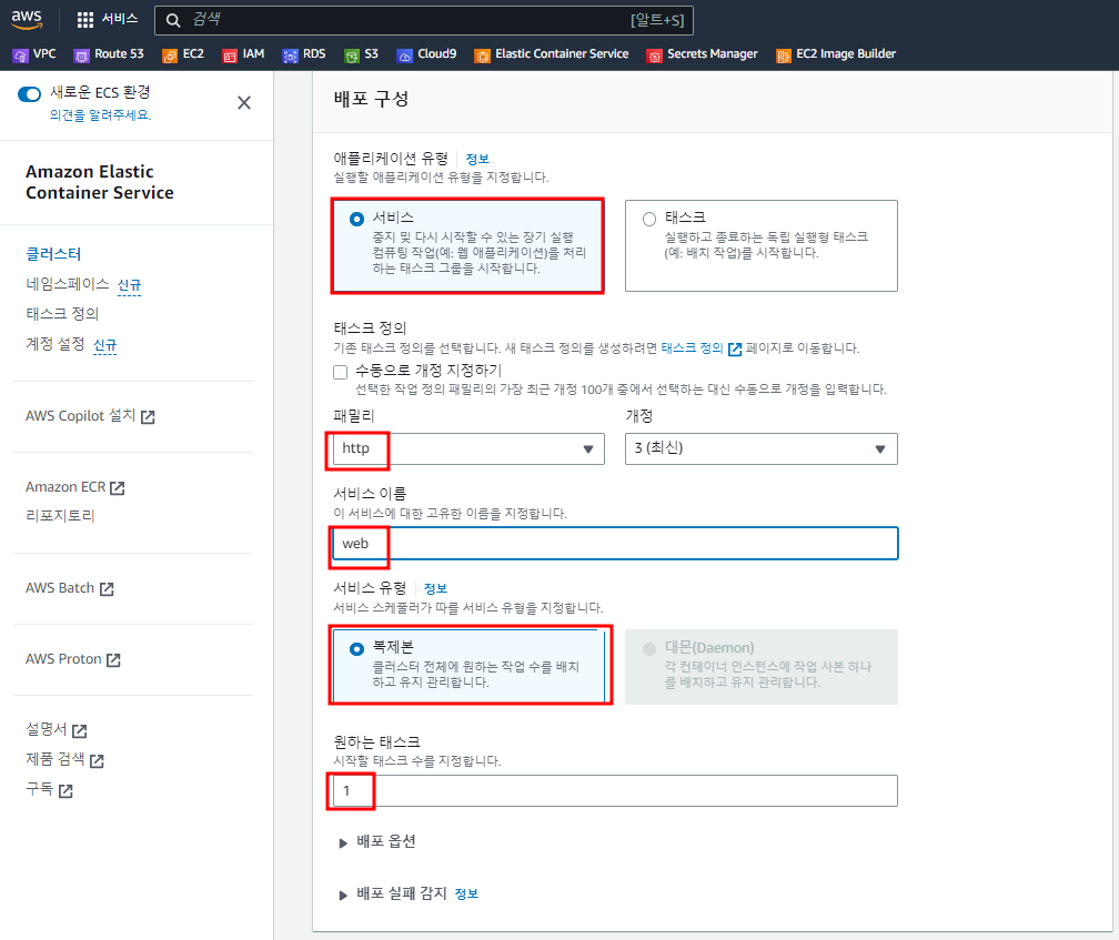 Cluster, Service, Task Definition, Task에 대해서 먼저 학습을 해 두셔야 합니다.