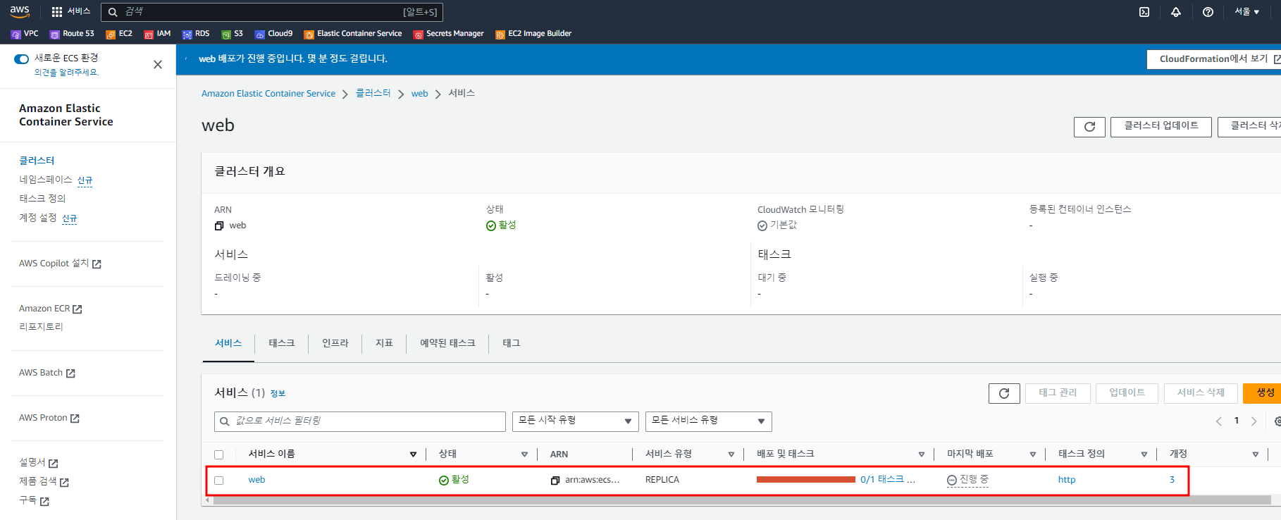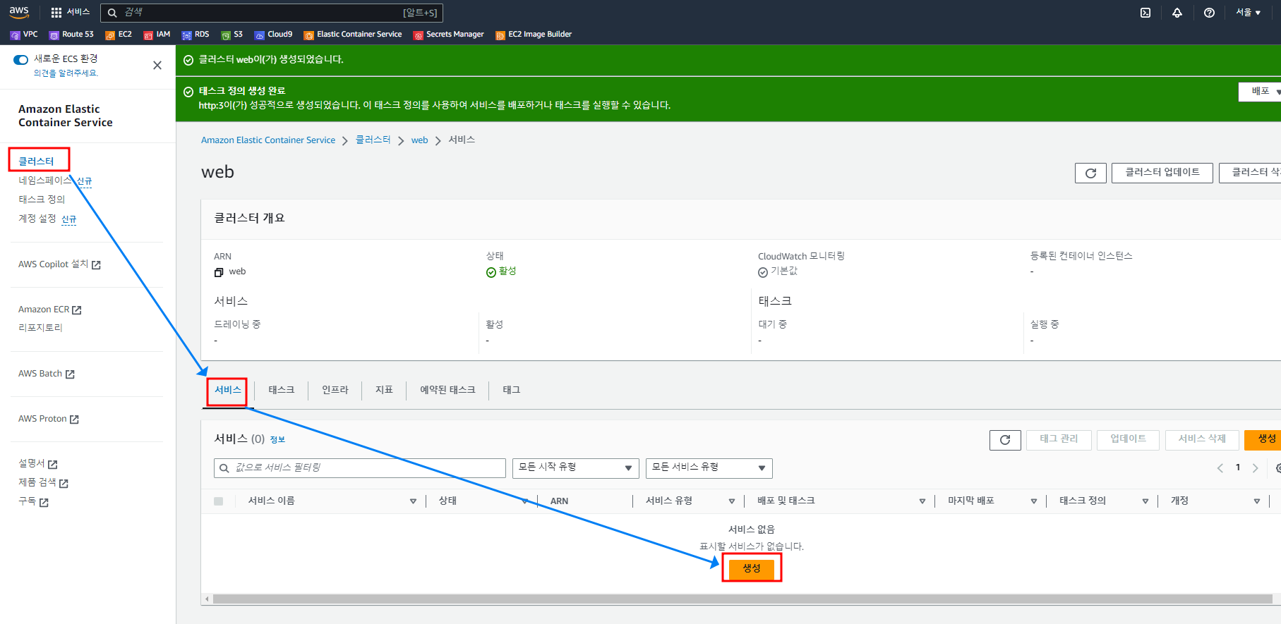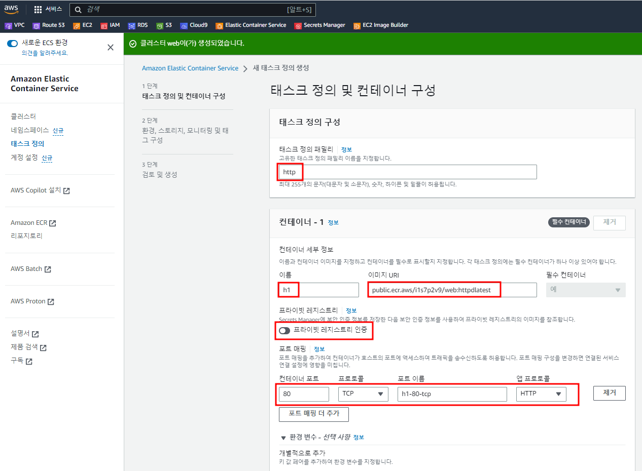Cluster, Service, Task Definition, Task에 대해서 먼저 학습을 해 두셔야 합니다.