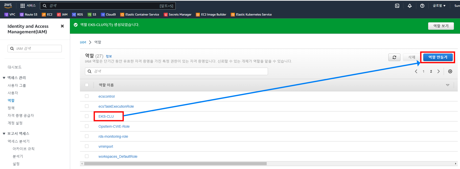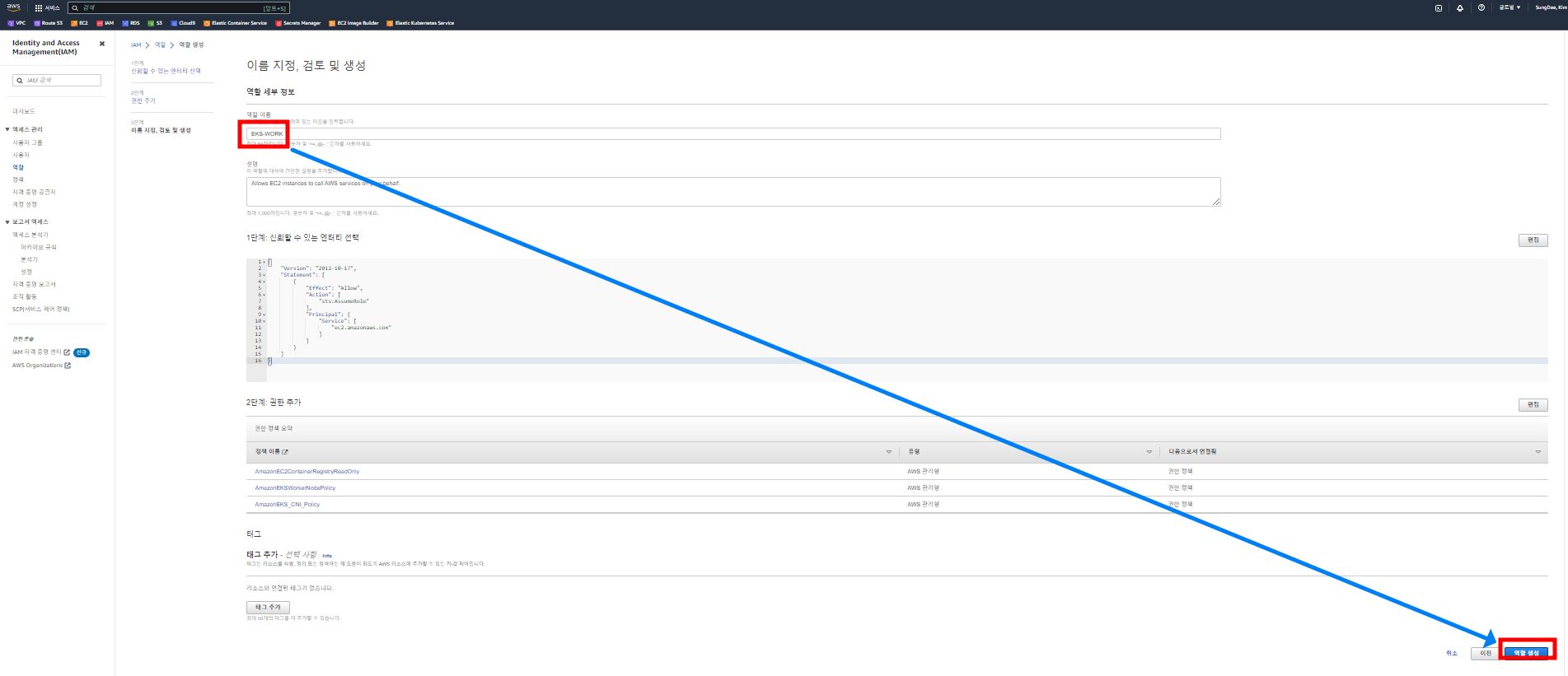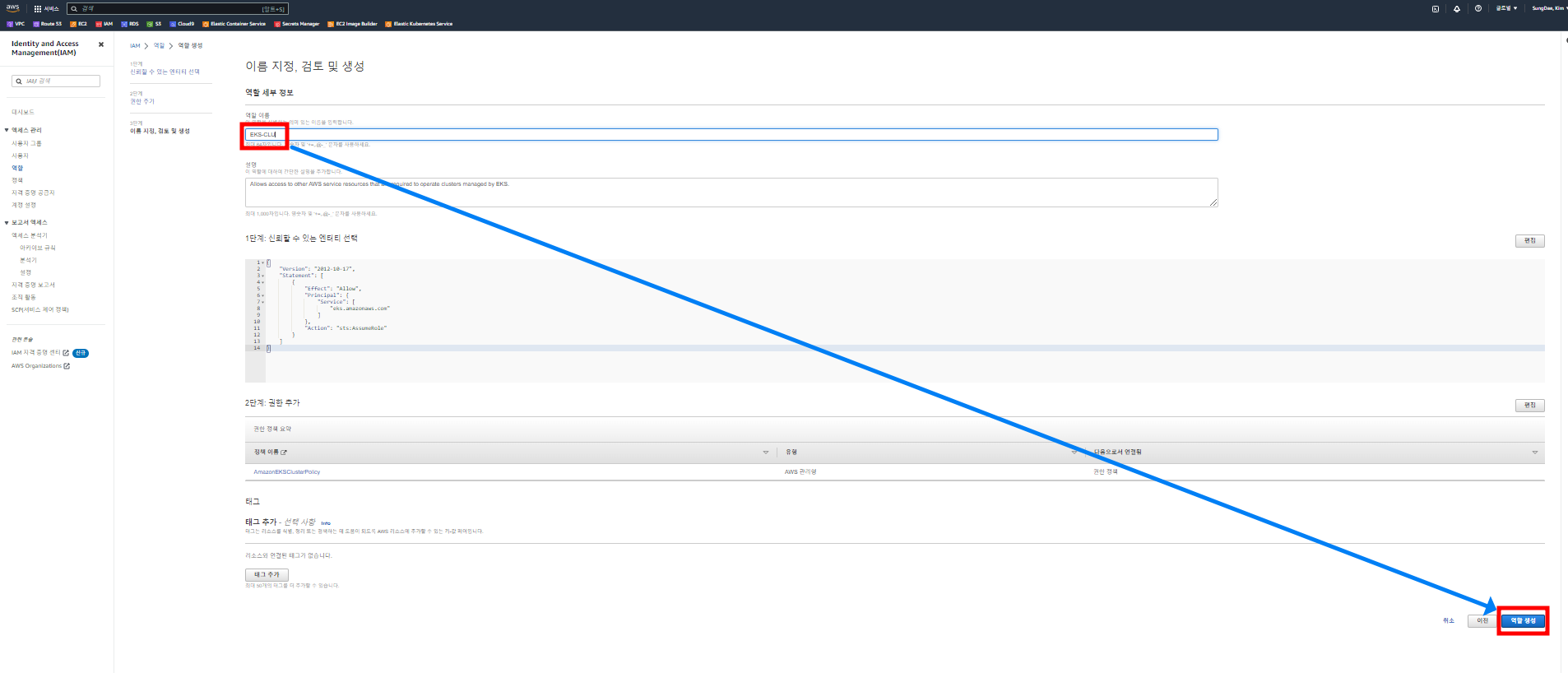 1.1.4.역할 이름(EKS_CLU) 설정 후 생성 클릭