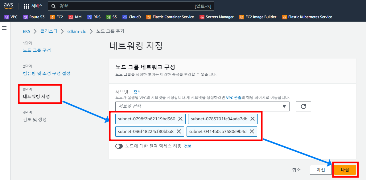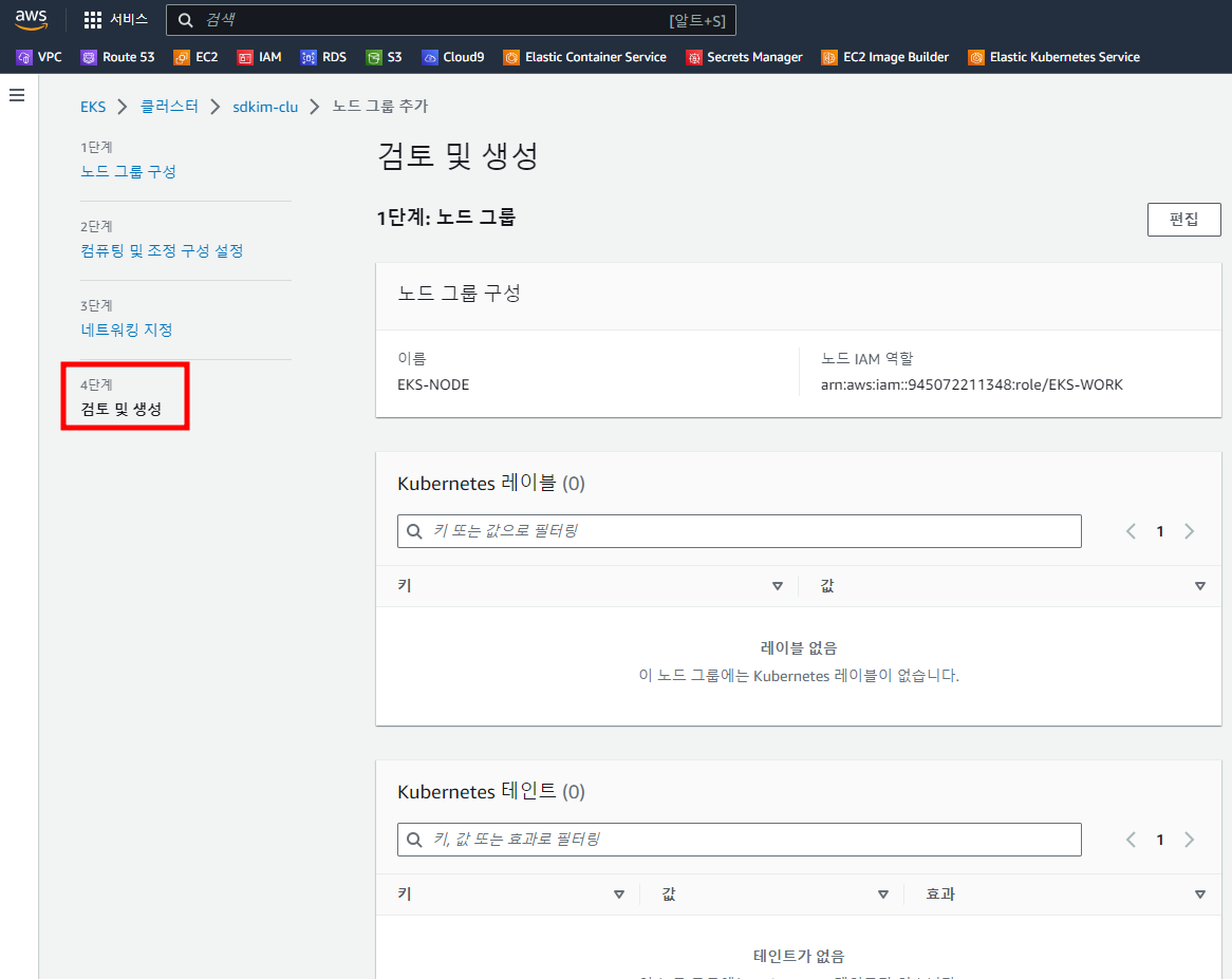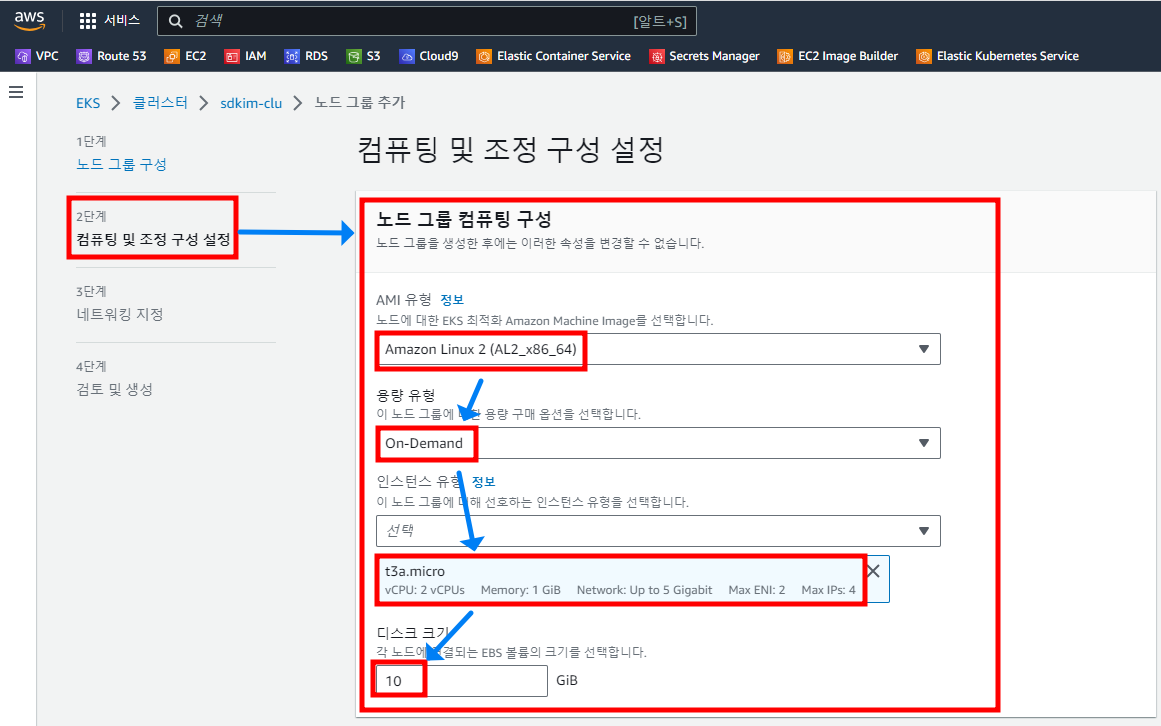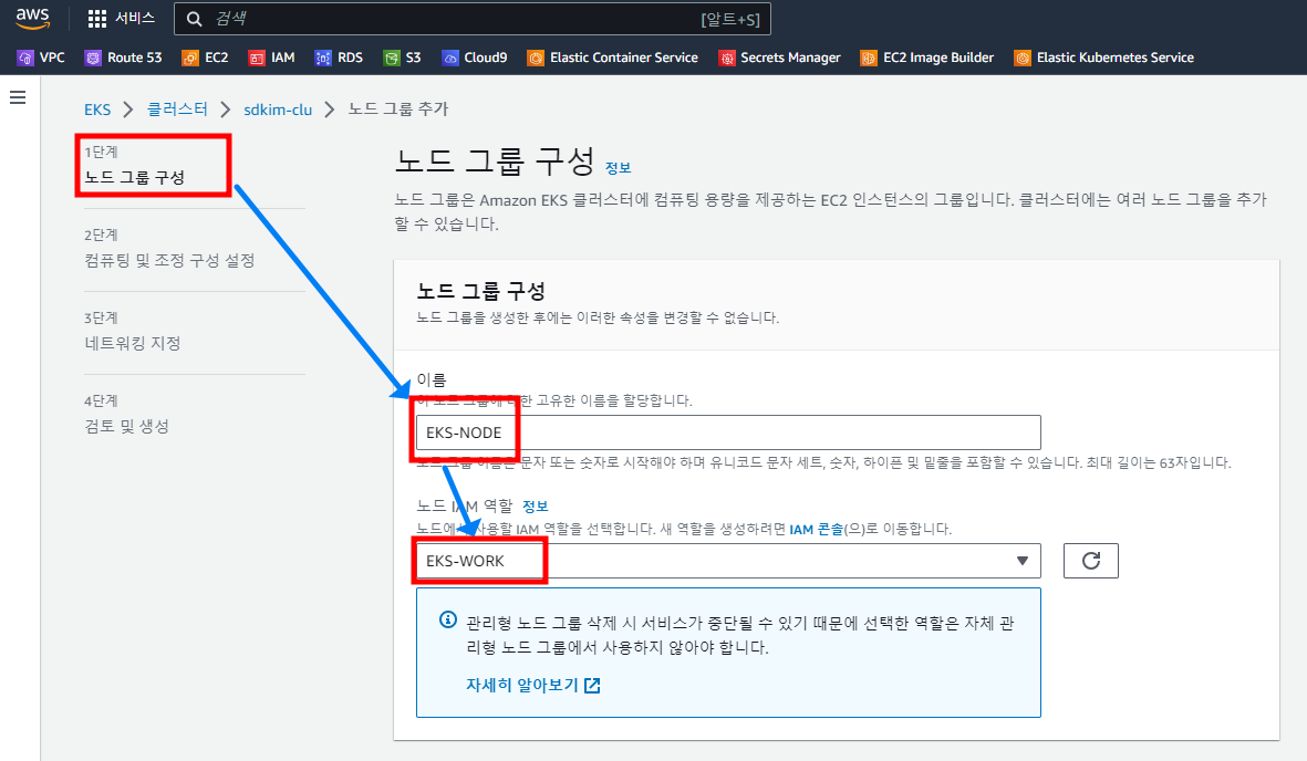 3.1.1. 클러스터(sdkim_clu) -> 컴퓨팅 -> 노드 그룹 추가