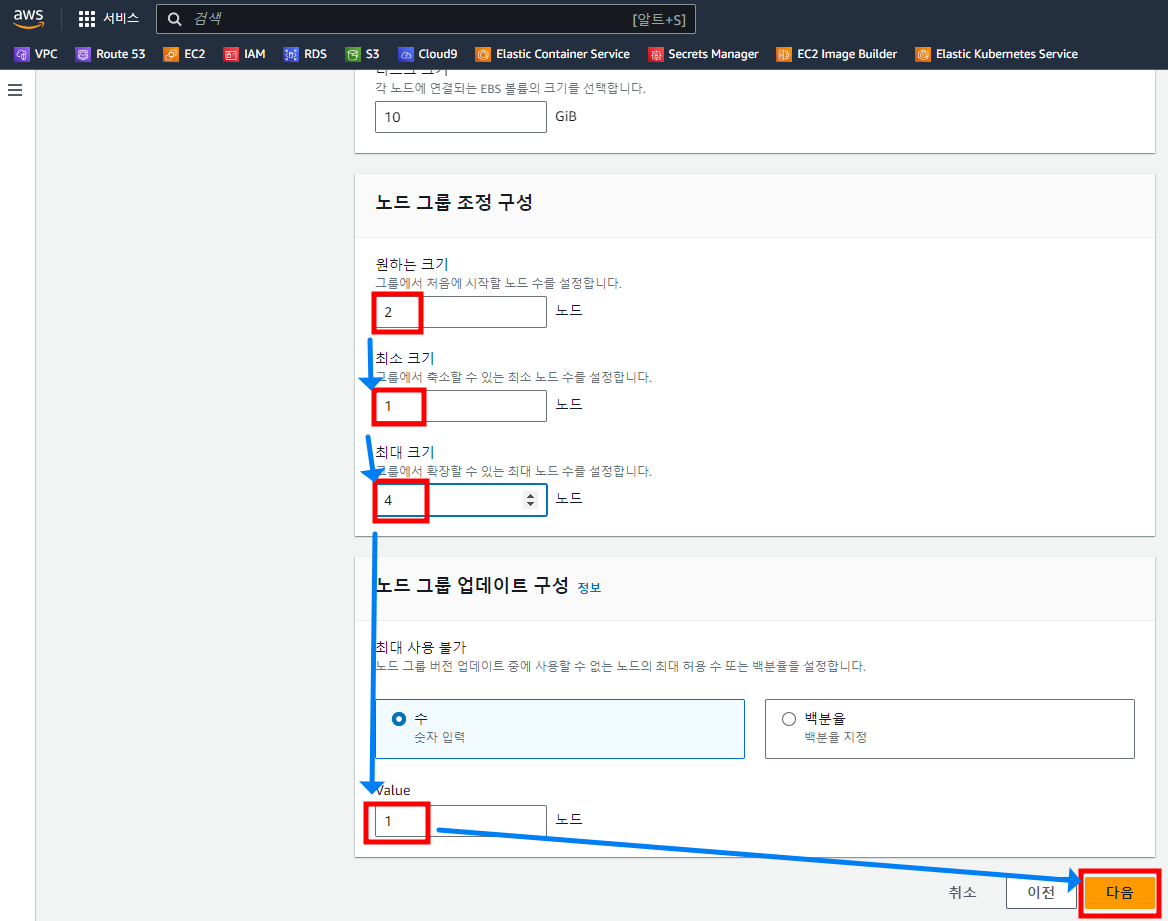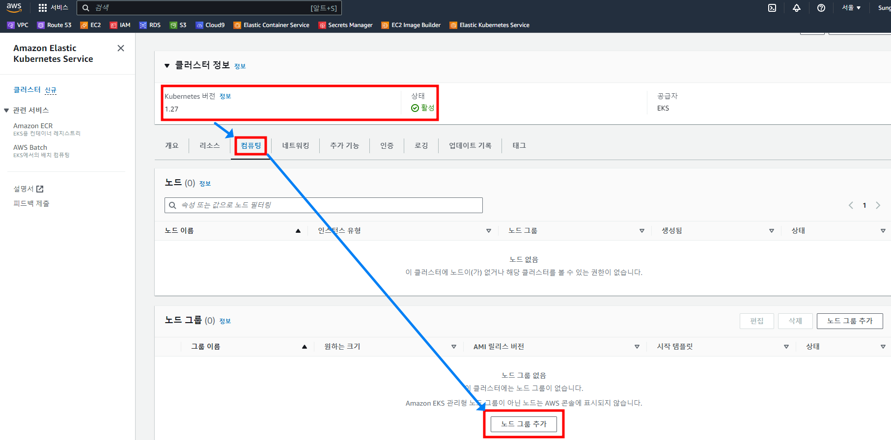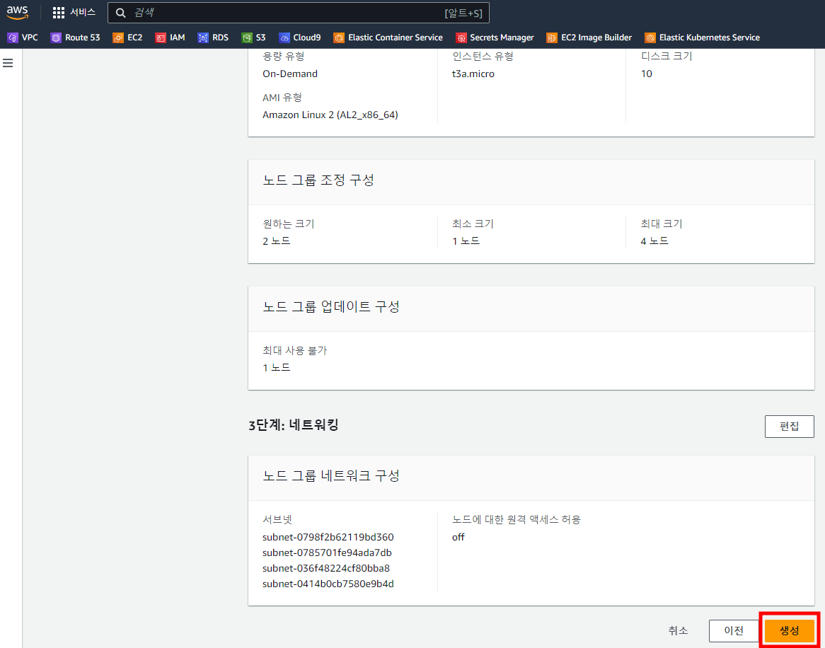 3.1.1. 클러스터(sdkim_clu) -> 컴퓨팅 -> 노드 그룹 추가