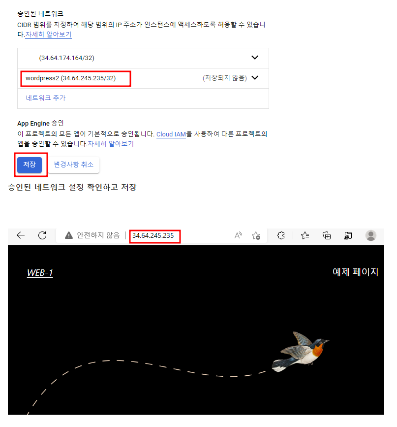 #! /bin/bash sudo su - setenforce 0 sed -i 's/SELINUX=enforcing/SELINUX=disabled/g' /etc/sysconfig/selinux yum install -y wget httpd yum install -y epel-release yum-utils yum install -y http://rpms.remirepo.net/enterprise/remi-release-7.rpm yum-config-manager --enable remi-php73 yum install -y php php-common php-opcache php-mcrypt php-cli php-gd php-curl php-mysqlnd wget https://ko.wordpress.org/latest-ko_KR.tar.gz tar xvfz latest-ko_KR.tar.gz cp -a wordpress/* /var/www/html/ chown apache.apache /var/www/html/* cp /var/www/html/wp-config-sample.php /var/www/html/wp-config.php sed -i 's/DirectoryIndex index.html/DirectoryIndex index.php/g' /etc/httpd/conf/httpd.conf sed -i 's/database_name_here/wordpress/g' /var/www/html/wp-config.php sed -i 's/username_here/root/g' /var/www/html/wp-config.php sed -i 's/password_here/It12345!/g' /var/www/html/wp-config.php sed -i 's/localhost/10.0.3.3/g' /var/www/html/wp-config.php # 10.0.3.3은 RDS의 IP Address cat > /var/www/html/index.html << EOF <html><body><h1>GCP-WEBSERVER</h1></body></html> EOF systemctl enable httpd systemctl start httpd2. 접속Test