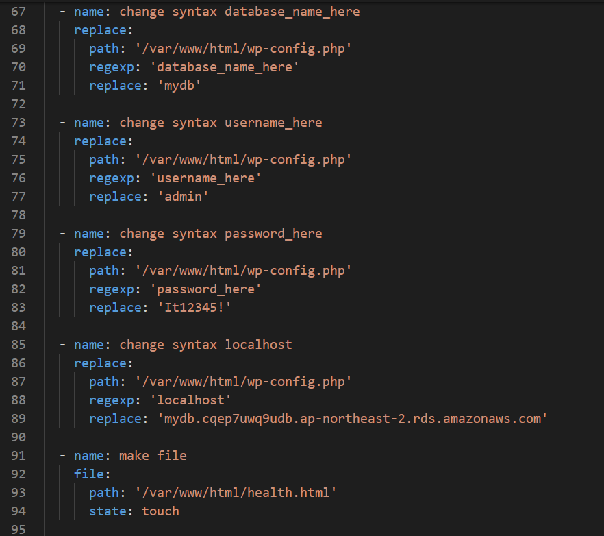 이번 차수에서는 wordpress를 Ansible 구성 후 이미 생성되어 있는 AWS RDS와 연동하는 작업입니다.