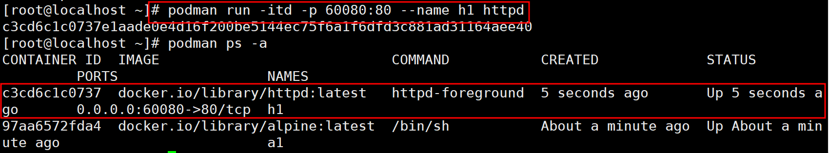 # podman run -itd -p 60080:80 --name h1 httpd6.2. httpd container 접속