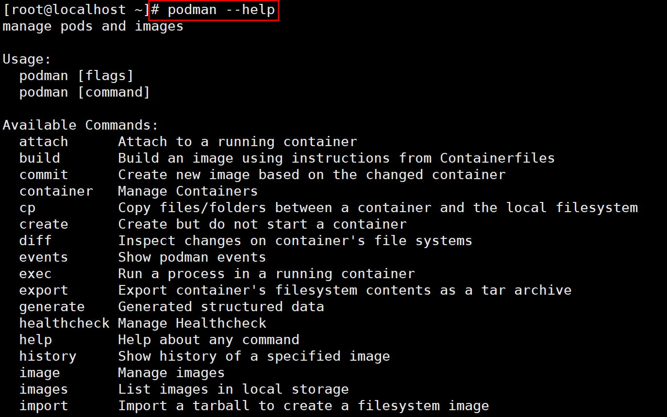 2.1. 도움말을 확인해보면 docker와 거의 흡사함을 알수 있습니다.
