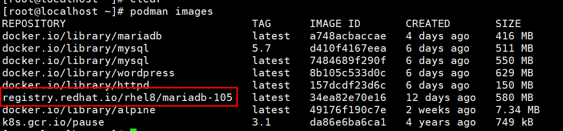 1.2.2. 등록된 순서대로 podman에서 image검색 결과를 제공합니다.