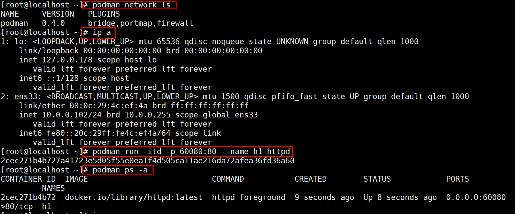 Podman 은 Daemon이 없기 때문에 container 실행전에는 Bridge가 생성되지 않는 다는 점이다.