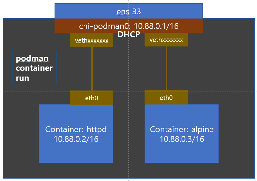 1. podman container가 실행되어야 cni-podman0라는 bridge가 생성되며