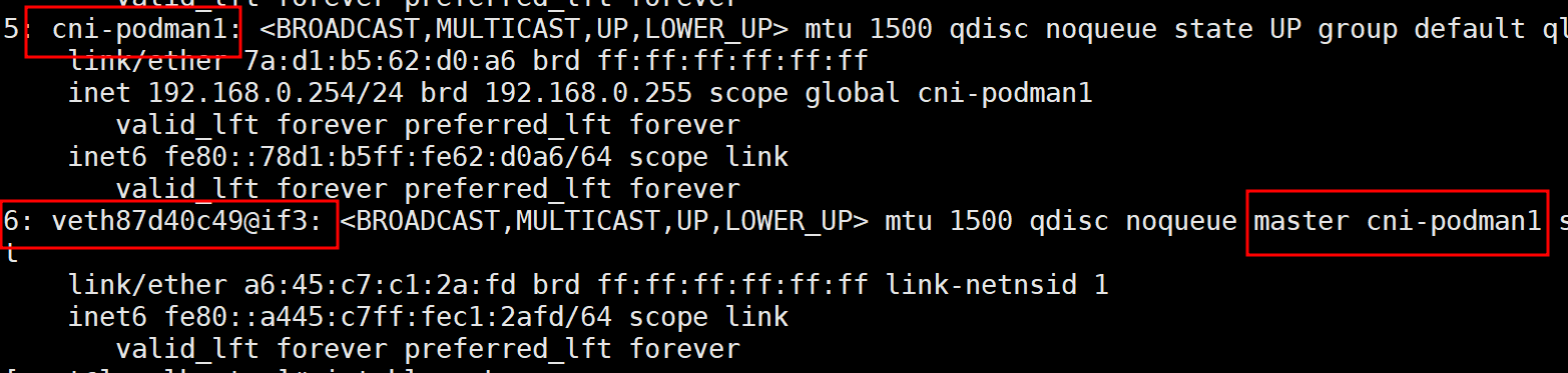 역시 port에서 master는 cni-podman1 이라고 출력되는 것을 확인할 수 있다.