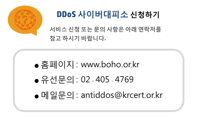 [한국인터넷진흥원] 국가지원 무료 DDoS 방어세상을 바꾸자! 2019. 4. 10. 10:56728x90