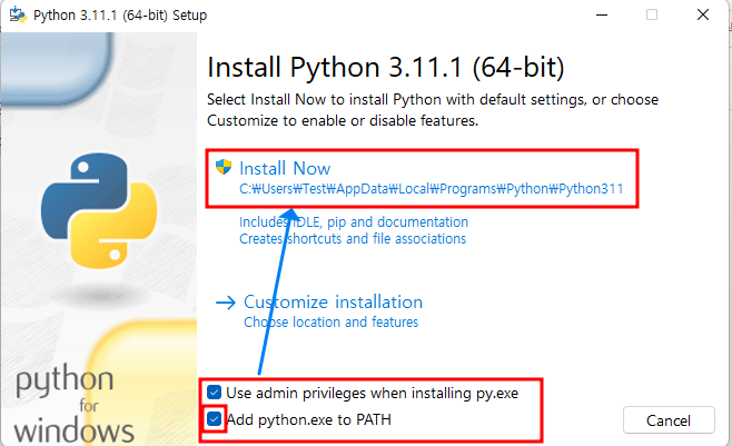 1.5. Add python.exe to PATH 체크
