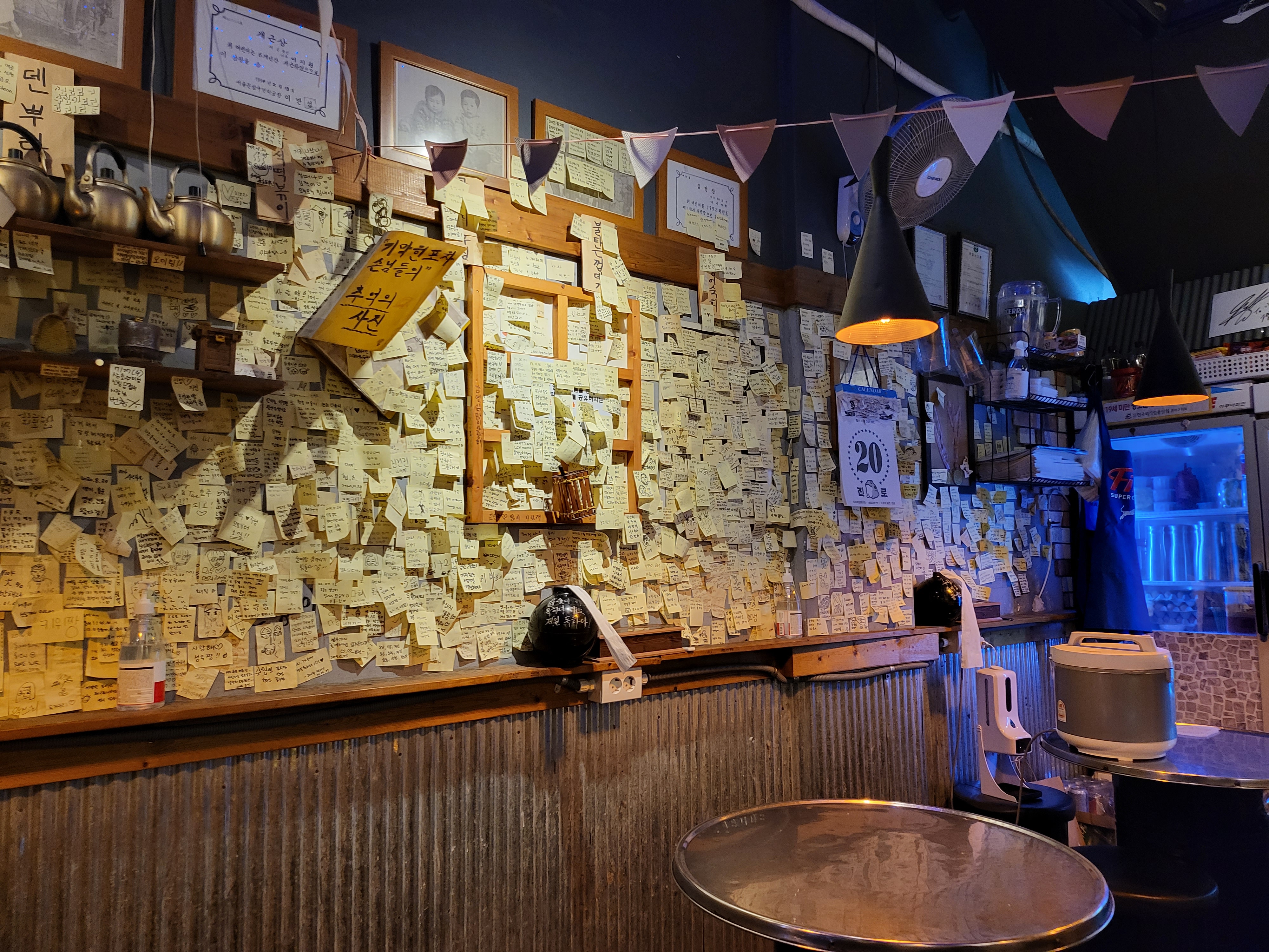 수많은 염원들의 벽과 맛깔난 닭고기 탕수육! - 탕슉 옆 떡볶이는 제 제자라 알려주심 무한리필 됩니다.그리고 좋은 사람들
