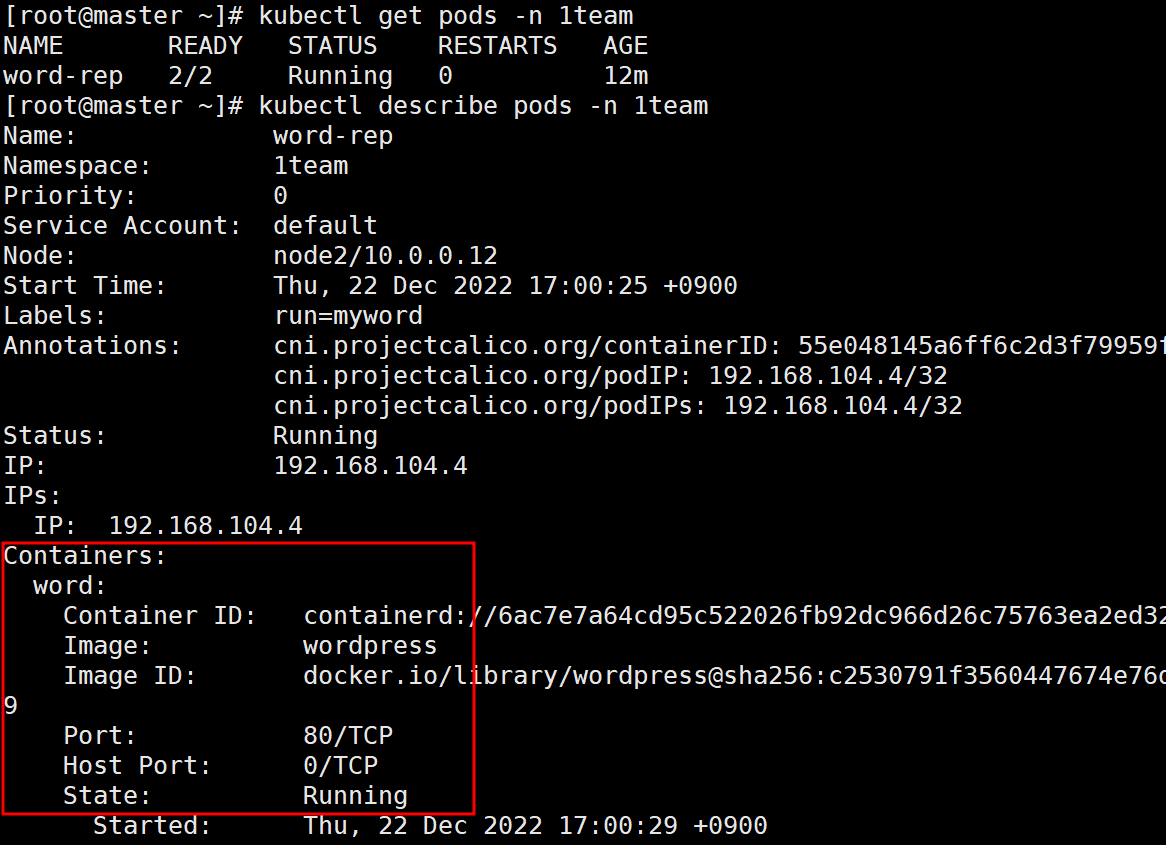 # kubectl get pods -n 1team1.5. pod내의 Container 상태 확인
