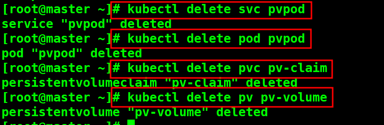# kubectl delete svc pvpod # kubectl delete pod pvpod # kubectl delete pvc pv-claim # kubectl delete pv pv-volume