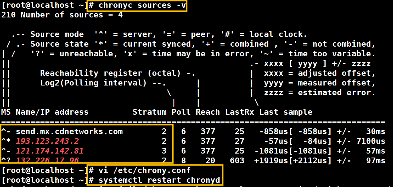 3.1.5.1. # chrony sources -v