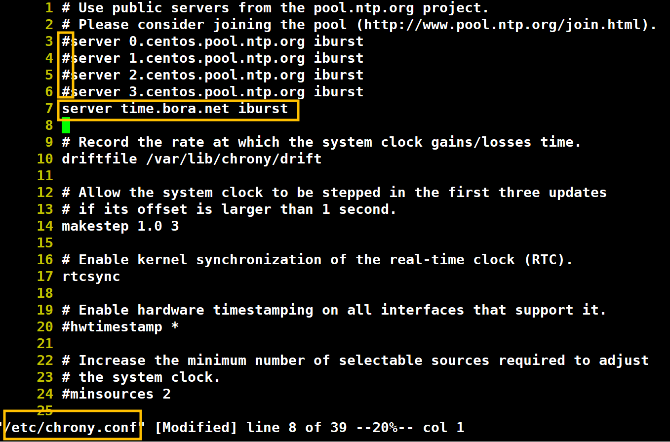 3.1.3.1. server time.bora.net iburst 추가