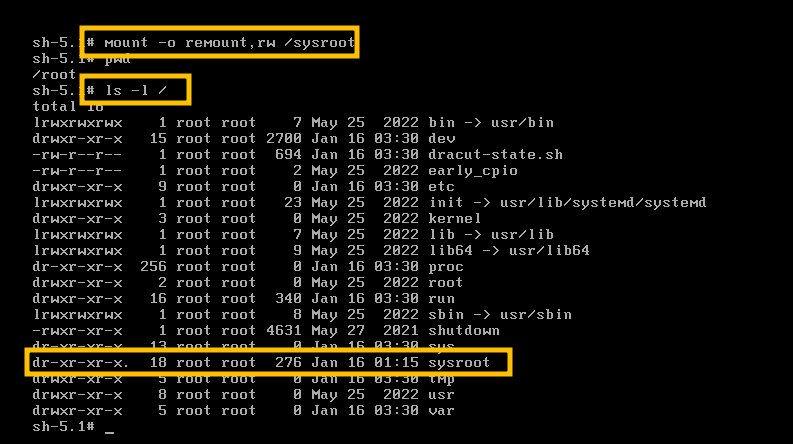 1.5.1. # mount -o remount,rw /sysroot