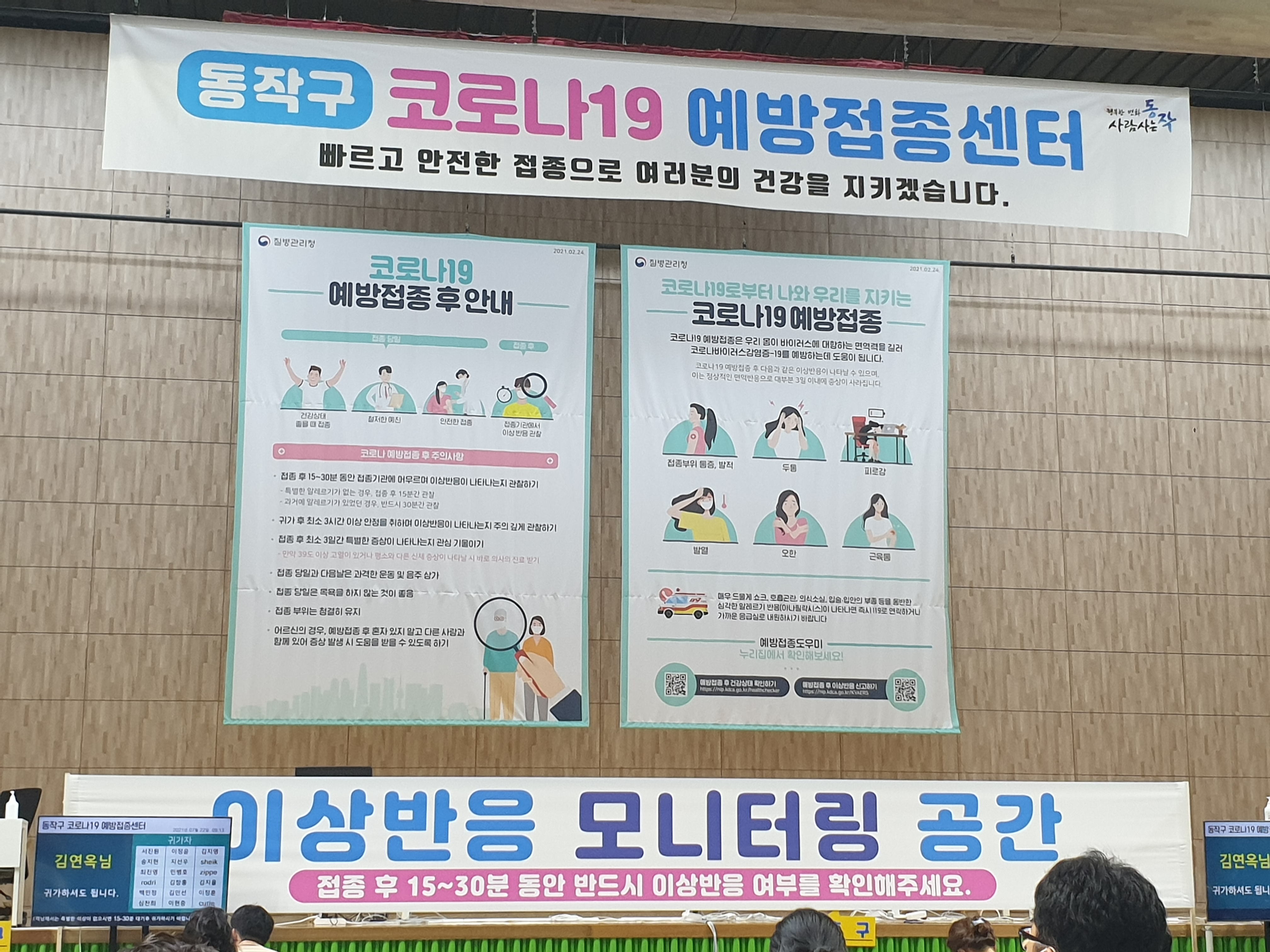 이제 접종 후 모니터링 공간으로 이동합니다.