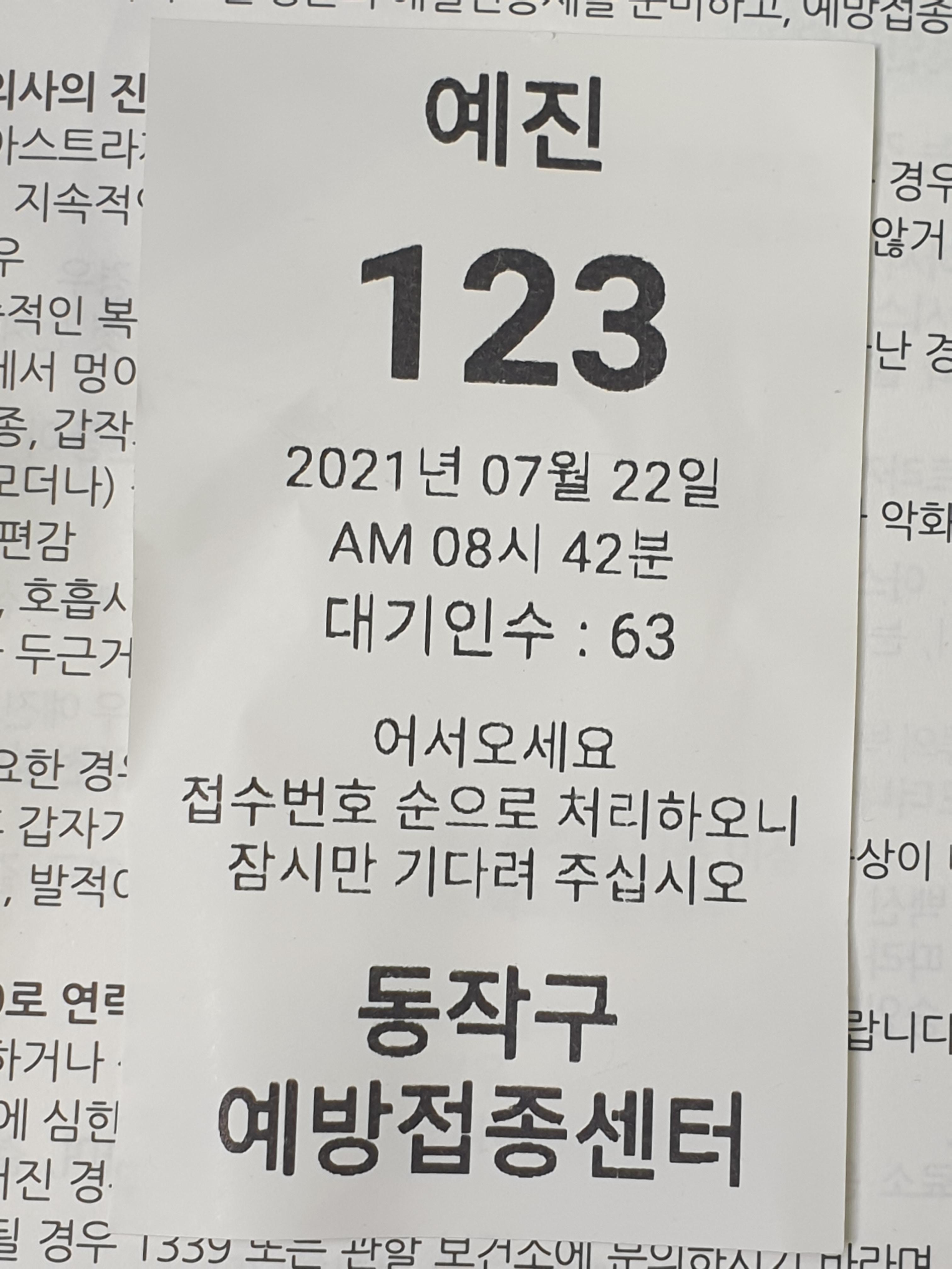 예진표 작성 예진표 작성을 빨리해서 다시 대기 순서를 3번 줄여서 123번
