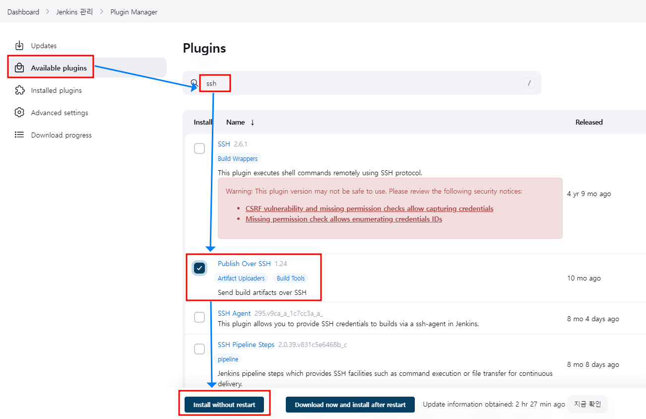 1.1.2. 'Avaliable plugins' -> ssh 검색