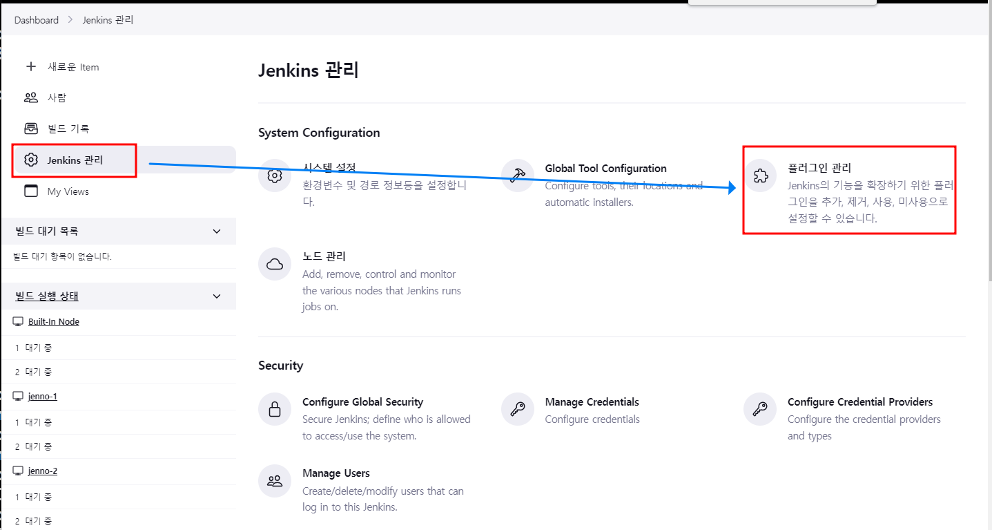 1.1.1. DashBoard 'Jenkins관리' -> '플러그인 관리' 클릭