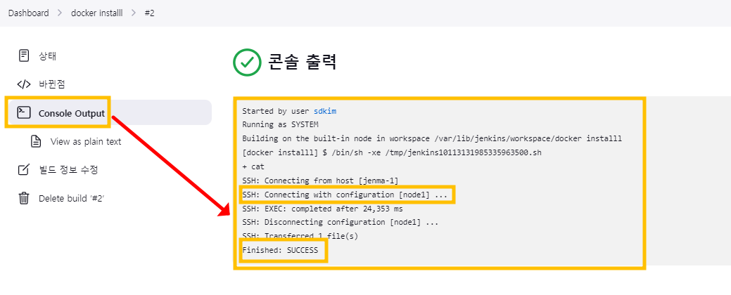 3.4.1.3. 콘솔 출력의 성공 메세지 확인