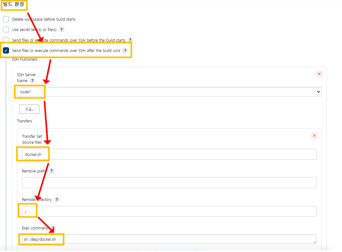 3.3.3.1. 'send files or execute commands over SSH after the build runs' 빌드 실행 후 파일 전송 및 명령실행