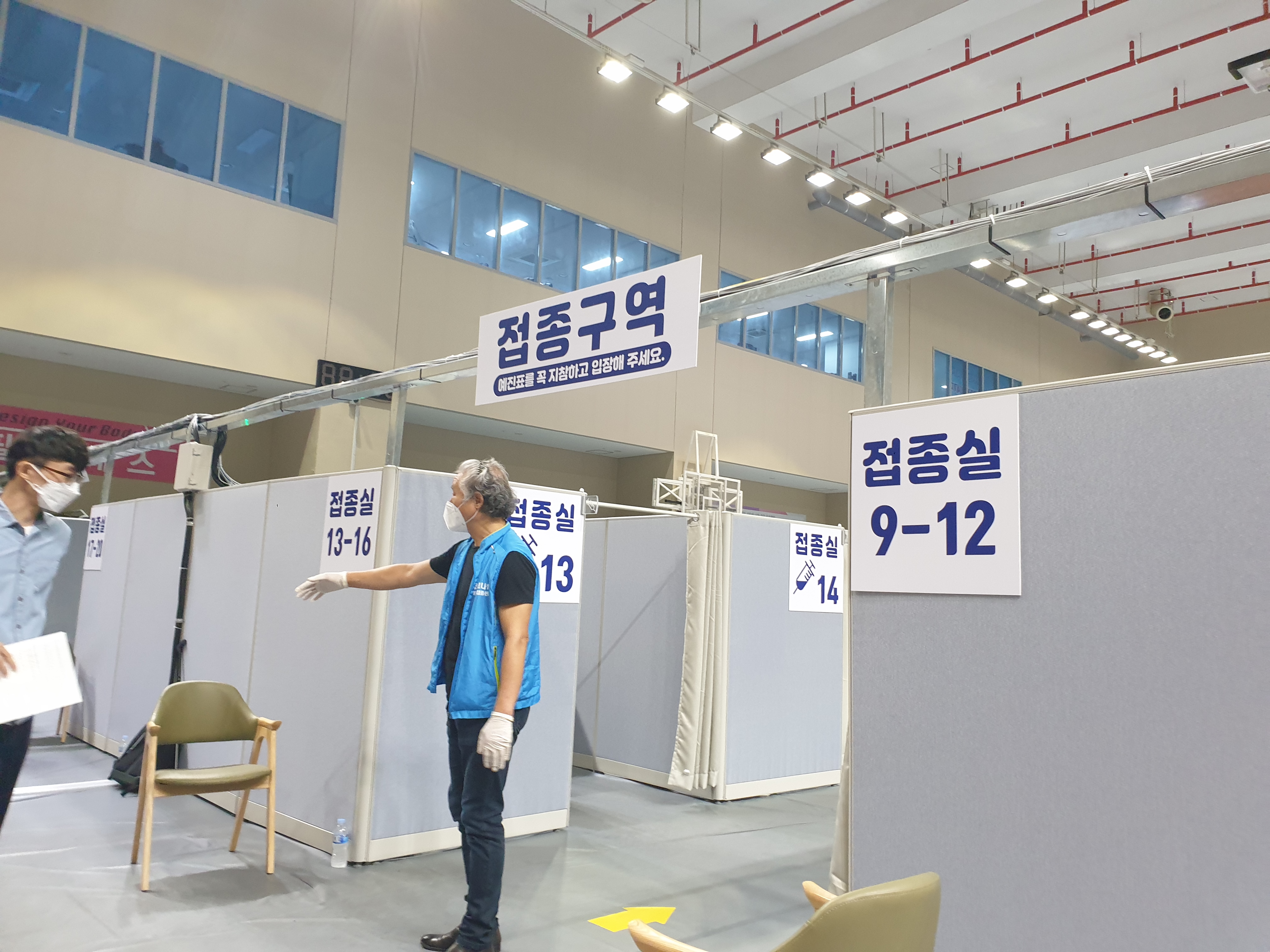 접종 전 예진 구역 드디어 접종 구역으로 진입합니다.