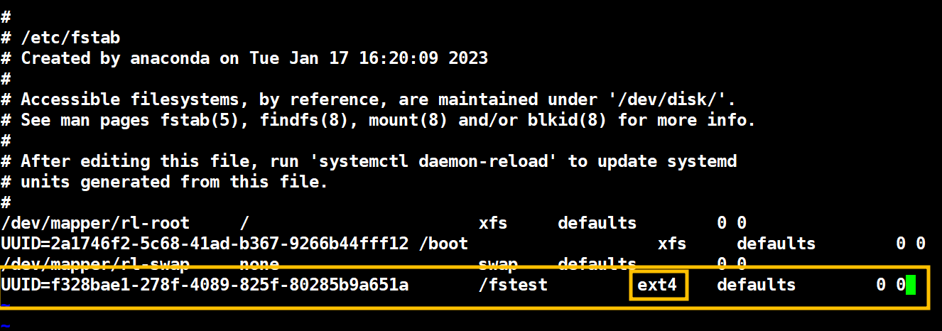1.3. /tstest 디렉토리 생성 후 /etc/fstab 영구 마운트 작업 진행