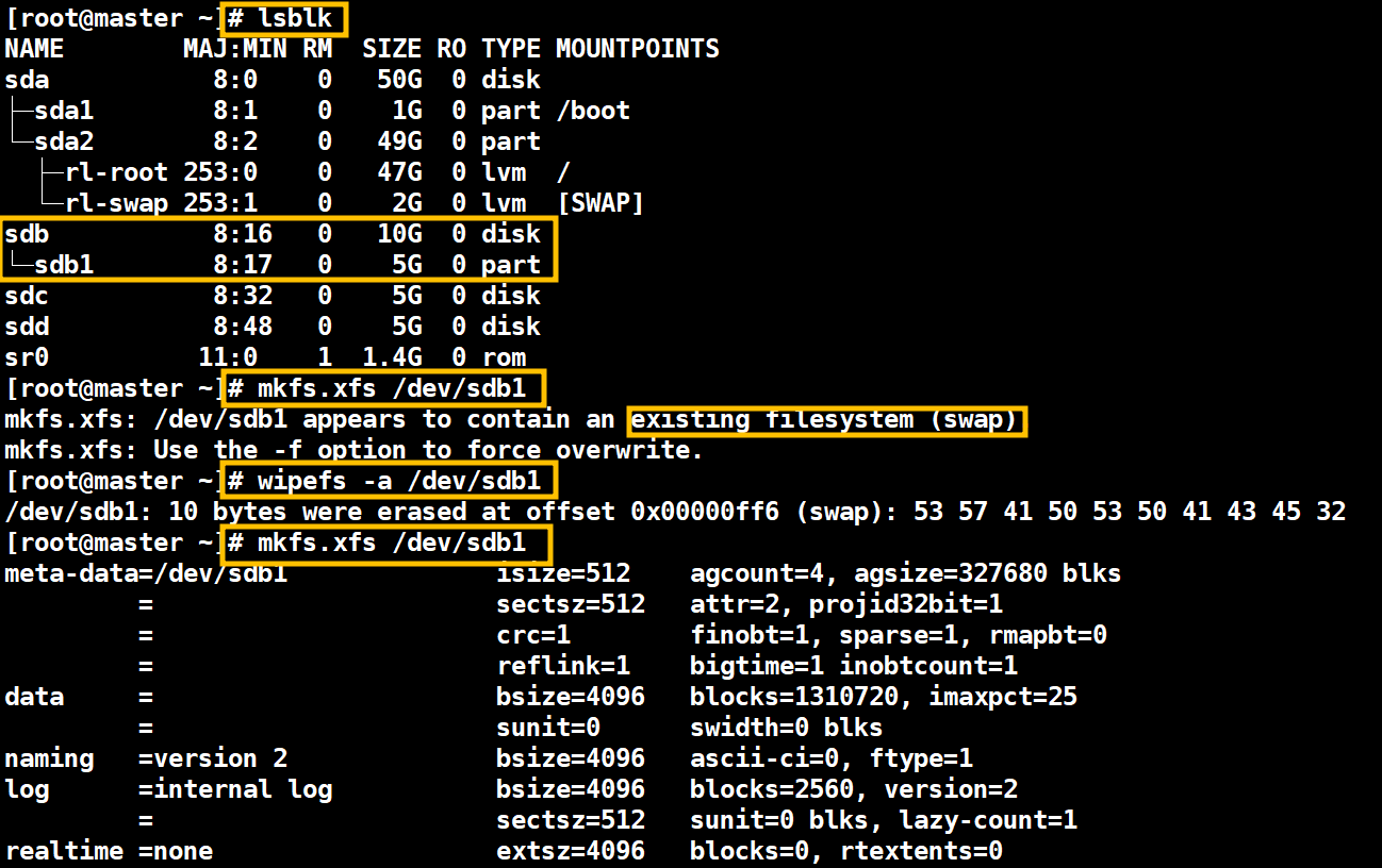 1.2.2. # wipefs -a /dev/sdb1 로 해결