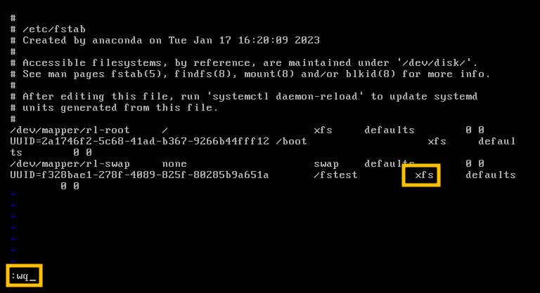 3.2. ext4 -> xfs 수정 후 저장