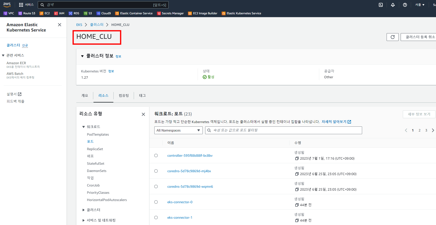 4.1. 생성된 HOME_CLU 클러스터 확인