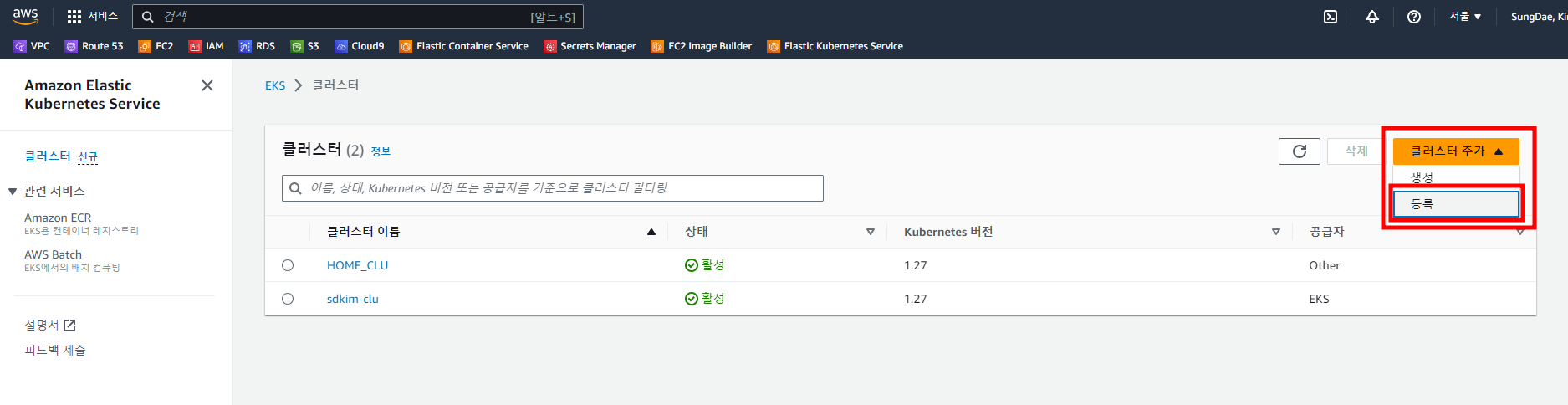 EKS를 활용하면 외부(GCP, Azure, Tanzu, Onpremis 등) K8S Cluster를 등록해서 관리할 수 있습니다.