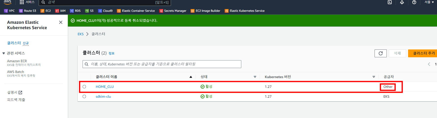 우선 결론부터 보여드리면 이렇게 EKS의 클러스터가 아닌 Other Cluster로 나타난다는 점입니다.
