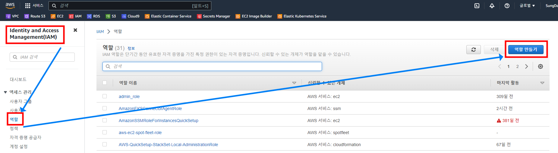 1.1.1. IAM -> 역할 -> 역할만들기 클릭