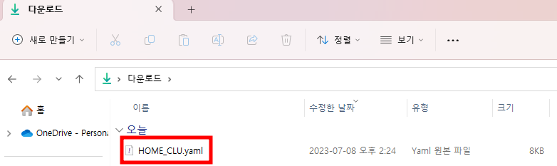 3.3.3. 업로드된 HOME_CLU.yaml 파일 확인