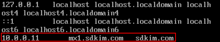 Sendmail 서버의 /etc/hosts 파일에 메일 서버의 IP Address 및 도메인 이름 등록